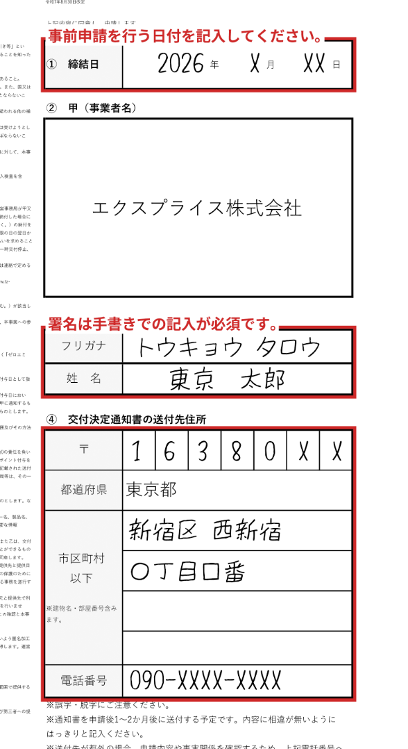 お客様に代わり、以下の書類を東京都の事務局に提出いたします。