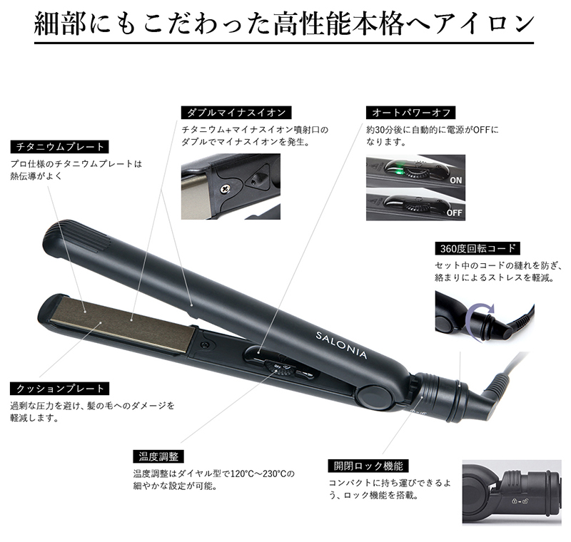 SALONIA SL-004S ブラック [ダブルイオン ストレートアイロン]