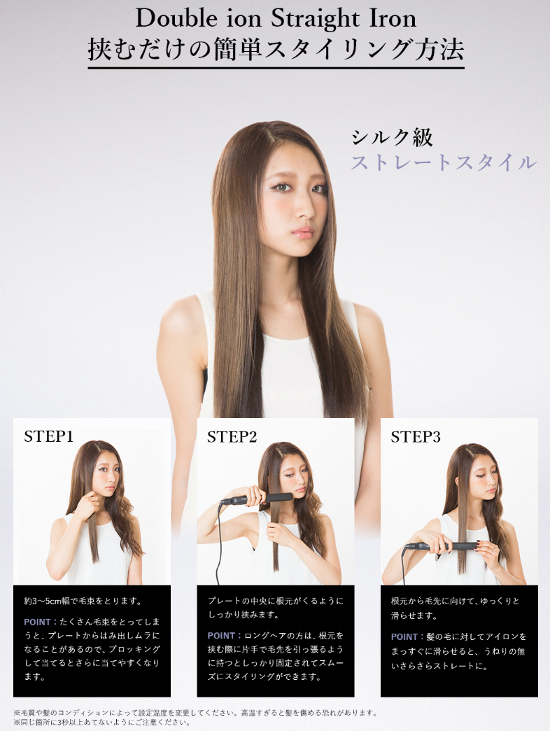 完全プロ仕様 「髪を傷めない」ヘアケアスタイリング。2重のマイナスイオンでシルク級ストレート!