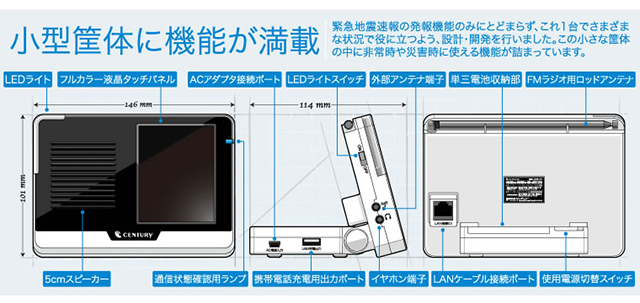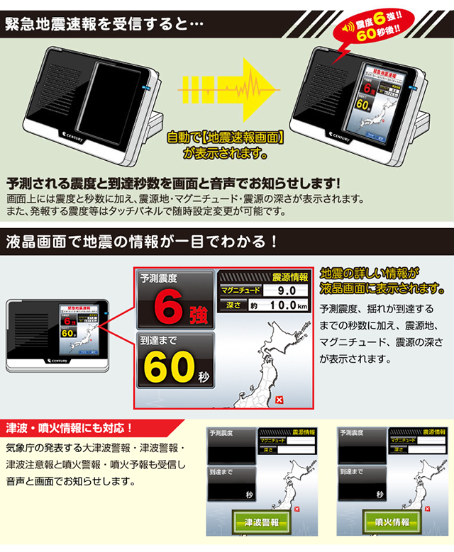 ★ 津波・噴火情報に対応。気象庁の発表を音声と画面でお知らせ!