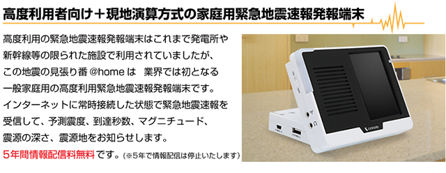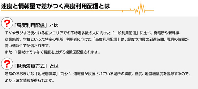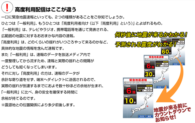高度利用者向け緊急地震速報をご家庭に発電所や新幹線で採用されている「高度利用者向け」の緊急地震速報を小型端末が発報します。