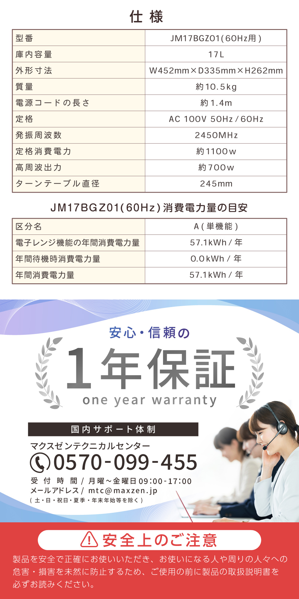 【アウトレット】 MAXZEN JM17BGZ01 60hz (西日本地域用) [単機能電子レンジ (17L)]