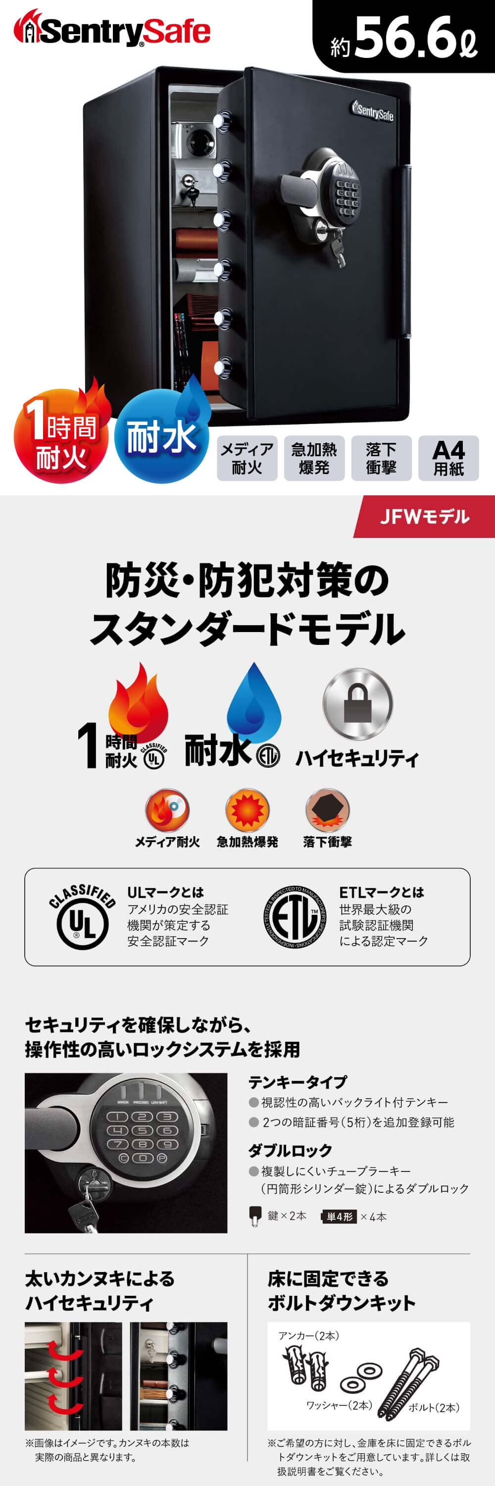 Sentry JFW205GGL ブラック ビッグボルトシリーズ [耐火・耐水金庫 (1時間耐火・テンキー式)]