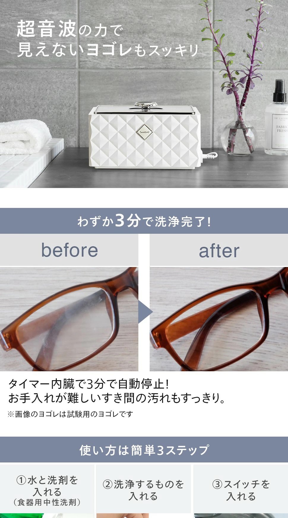 エレガント&コンパクト実は実力派 超音波洗浄器。