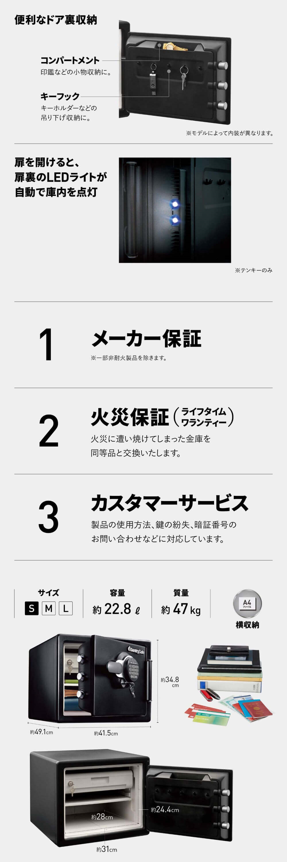 セントリー独自の耐火材「ピロノックス」により、金庫の厚い壁面をスリムにすることに成功。高い耐火性能を備えながらも、A4ファイル収納可能な広々とした庫内を実現しました。