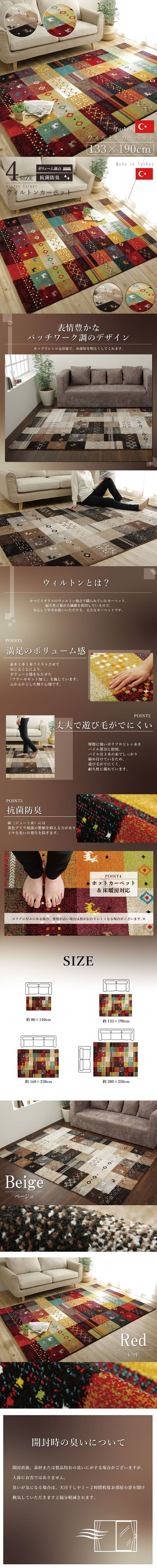 イケヒコ・コーポレーション 1321070240201 トルコ製 輸入ラグ ウィルトン織り カーペット ギャベ柄 フォリア レッド 約133×190cm