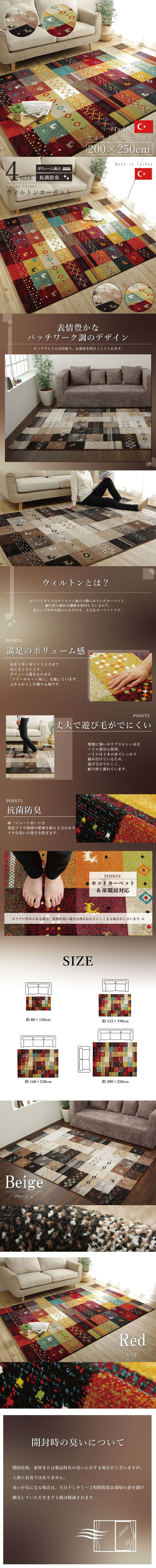 イケヒコ・コーポレーション 1321070240601 トルコ製 輸入ラグ ウィルトン織り カーペット ギャベ柄 フォリア レッド 約200×250cm