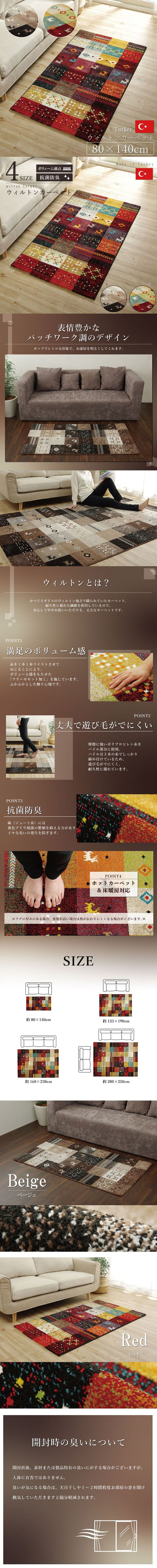 イケヒコ・コーポレーション 1321070240101 トルコ製 輸入ラグ ウィルトン織り カーペット ギャベ柄 マット フォリア レッド 約80×140cm