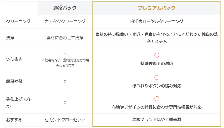 ・より汚れ落ちが良く、風合いを守る手仕上げ(シミ抜き・簡易補修付)を行うハイグレードなクリーニング。