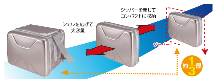 収納場所に困るハードクーラーと違い、使わない時は折りたたんでコンパクトに。