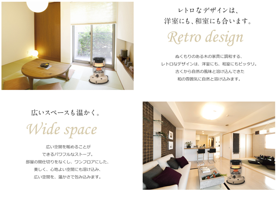 ・下段赤熱式:赤熱するので、遠赤外線が発生。じんわりとした暖かさが広がります。