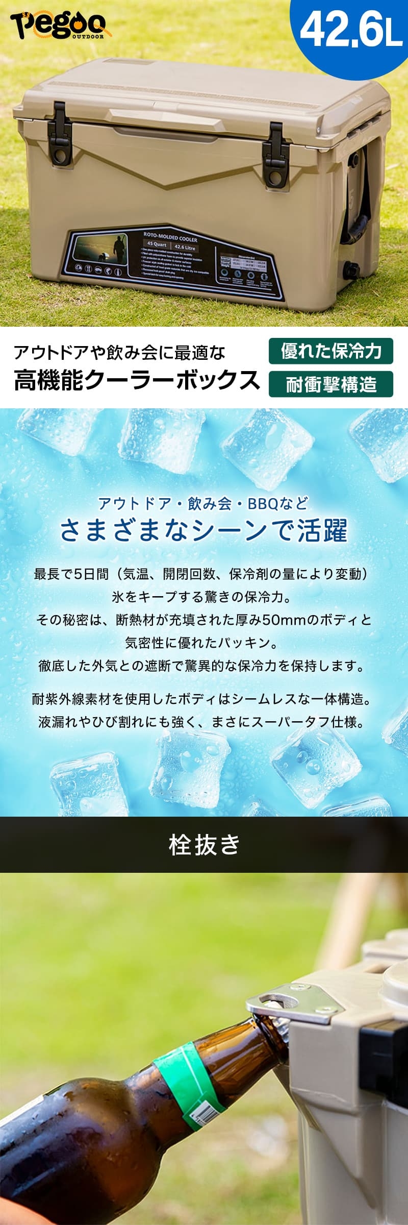 pegoo CL-04501 45QT サンド [クーラーボックス]