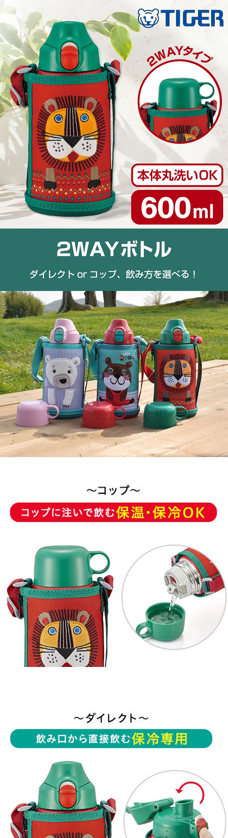 ・飲み口部分を付け替えるだけでワンプッシュオープンのダイレクトドリンクボトルとコップ使用の2タイプの飲み方が楽しめます。