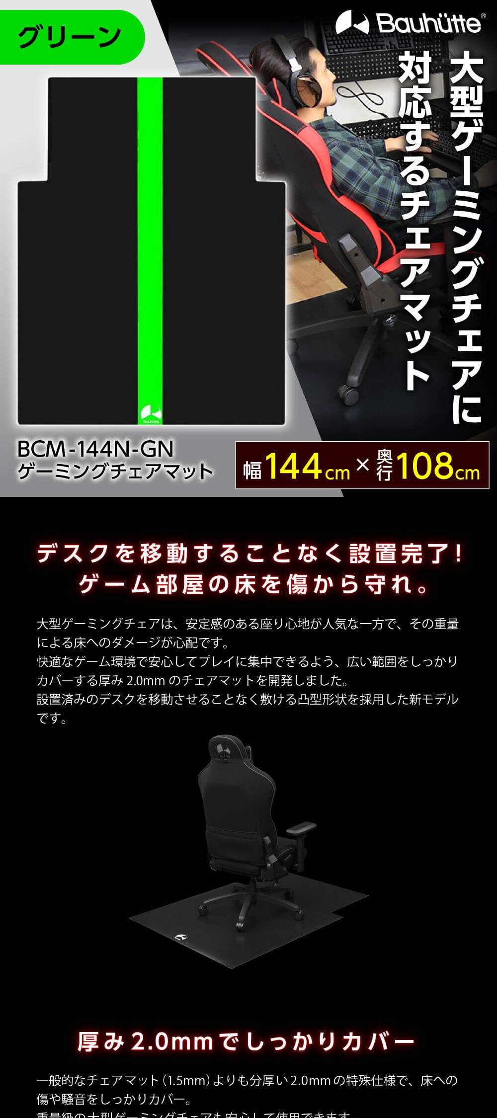 Bauhutte バウヒュッテ BCM-144N-GN ゲーミングチェアマット グリーン 147×108cm