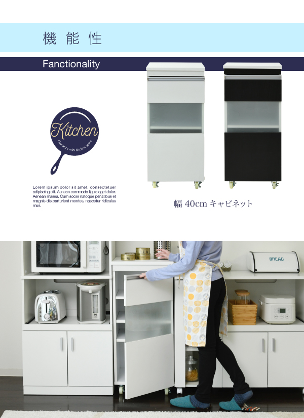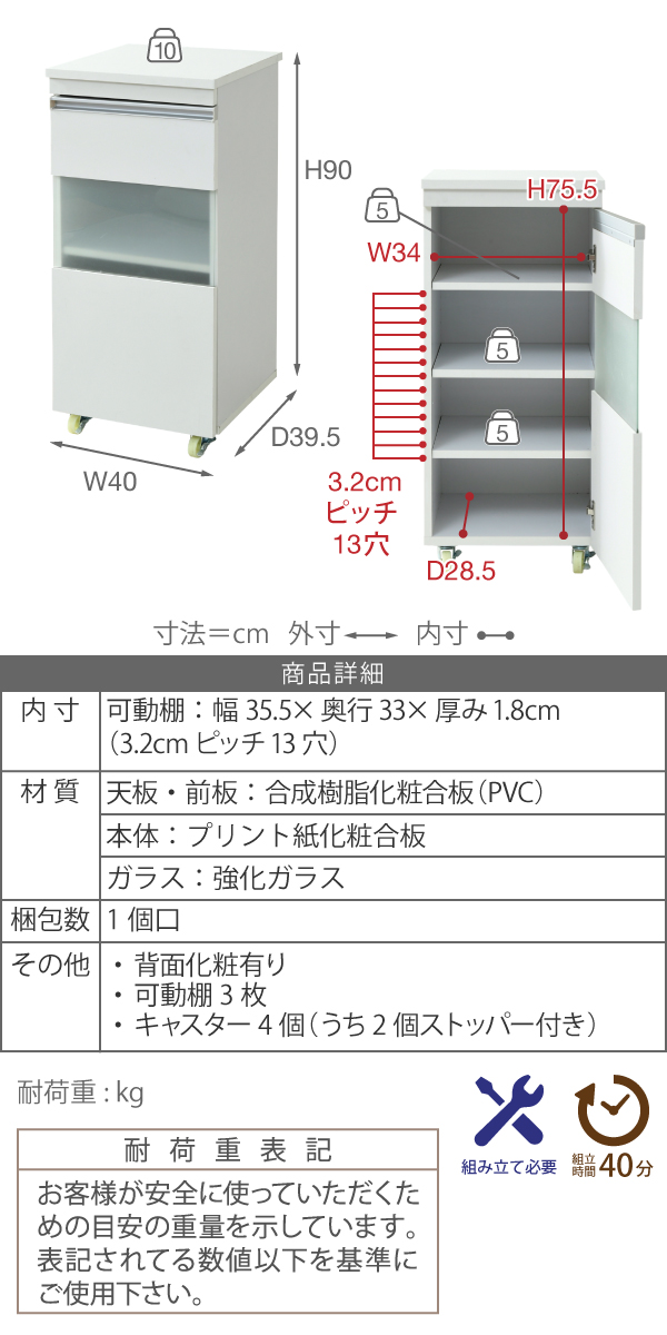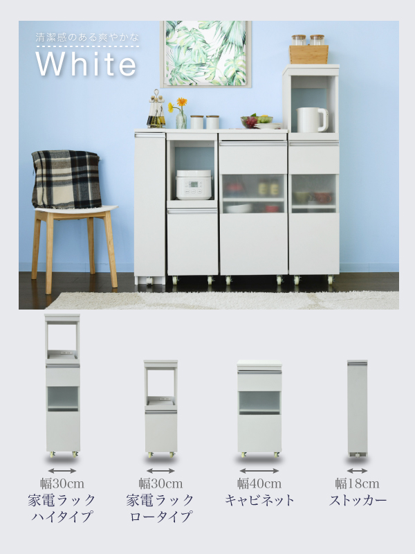 JKプラン FKC-0005-WH ホワイト 隙間ミニキッチン [キッチンラック ロータイプ 幅40 奥行39.5 高さ90cm]