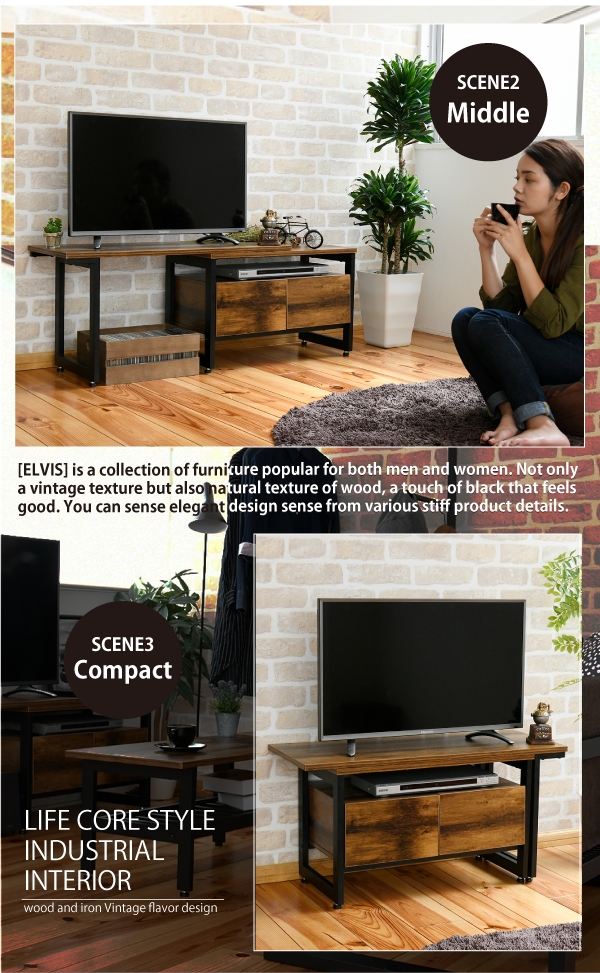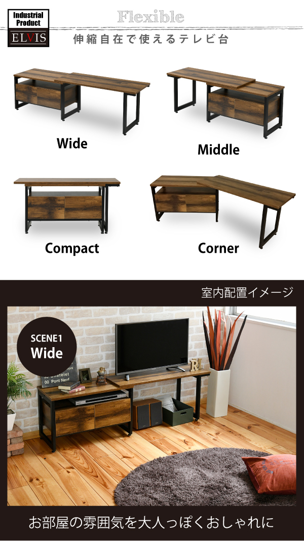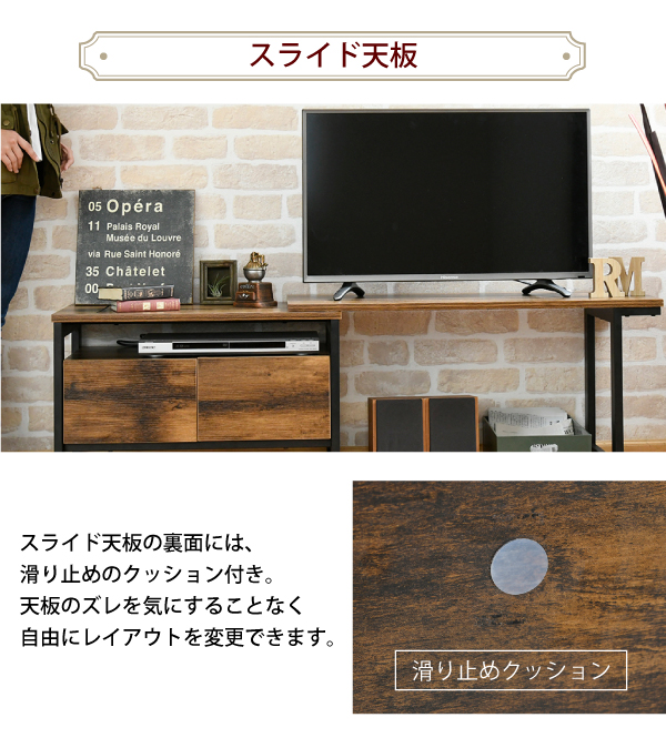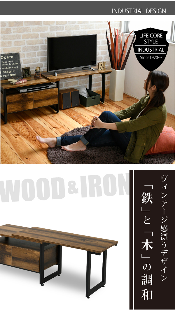 JKプラン KKS-0016-BKBR インダストリアル [ローボード テレビ台 伸縮式 幅90~136 奥行35 高さ45.5cm]