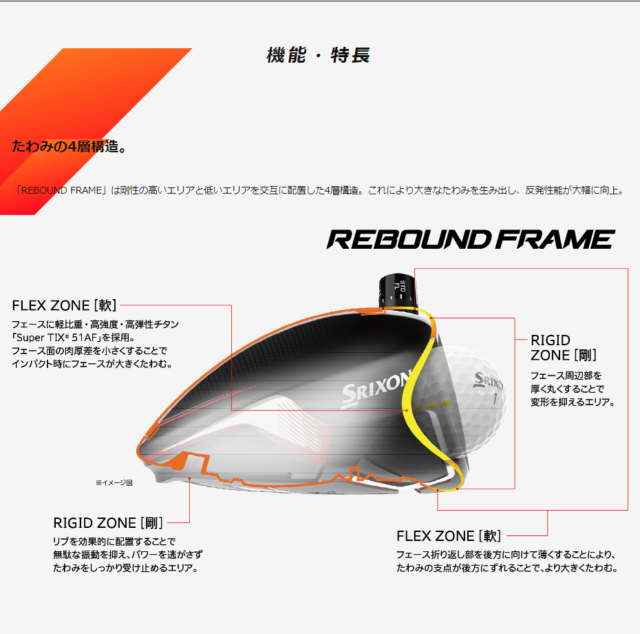 ツアープロとスタッフの力を集結して開発。「REBOUND FRAME」で最大級のスピードを生み出し、驚異の飛びとやさしさを実現したスリクソン ZX5 ドライバー。