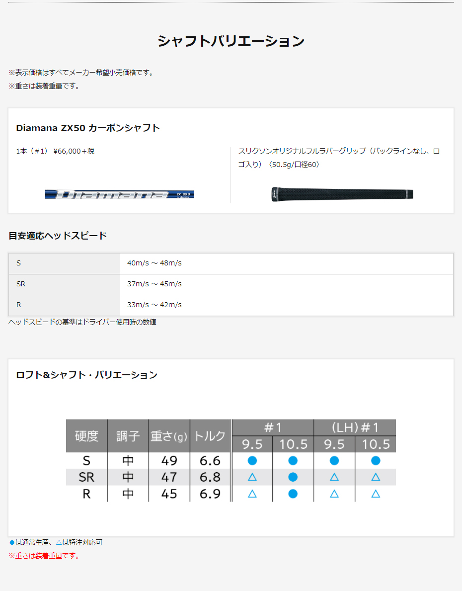 スリクソン「ZXシリーズ」のヘッドとの相性を最大限に生かした、三菱ケミカル社製オリジナルシャフトを装着しました。