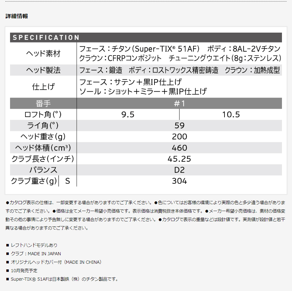 ヘッド構造 | ボディ:8AL-2Vチタン(ロストワックス精密鋳造) フェース:チタン Super-TIX 51AF(鍛造) |