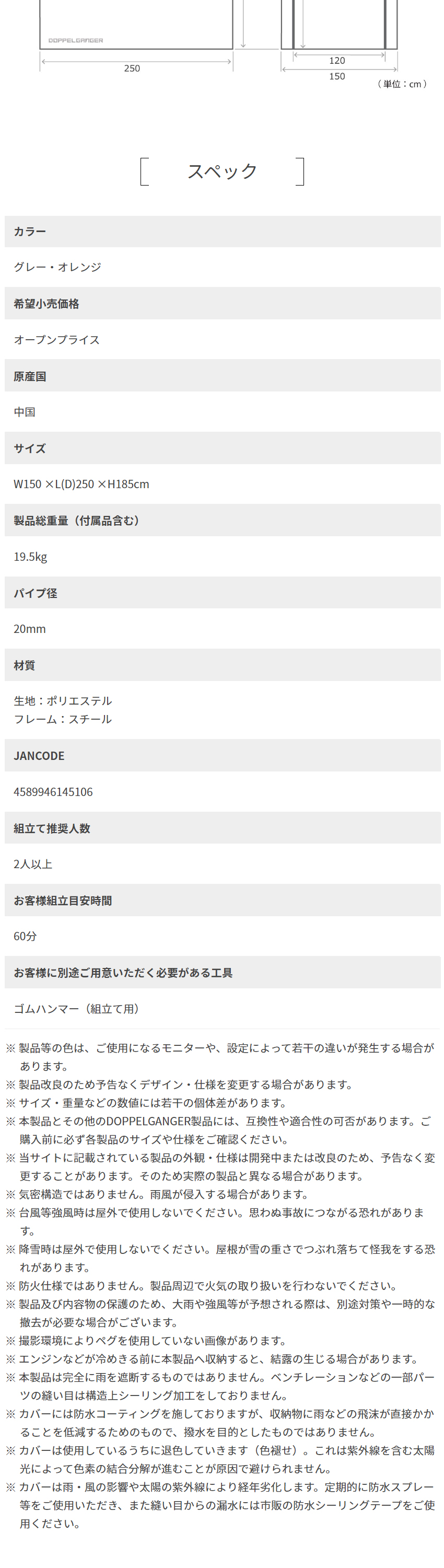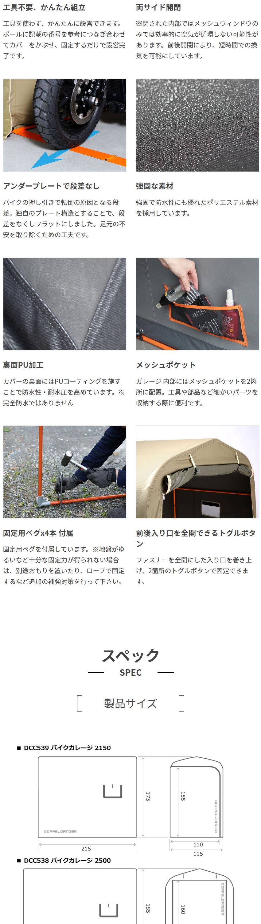 DOPPELGANGER DCC538-GY バイクガレージ 2500 グレー・オレンジ