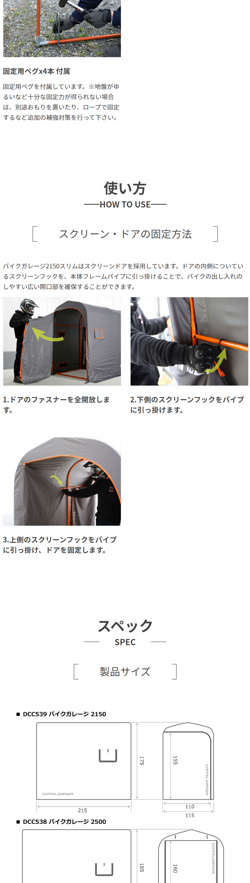 DOPPELGANGER DCC539-GY バイクガレージ 2150スリム グレー・オレンジ