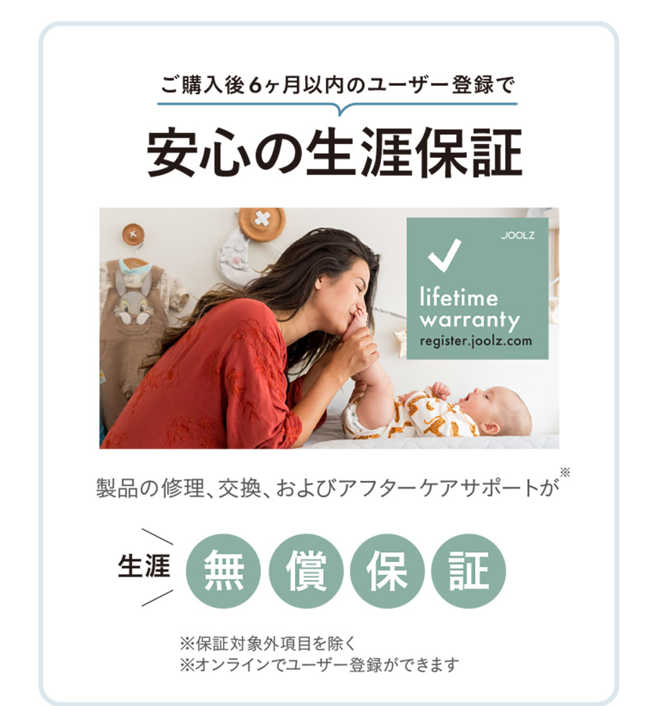 ・厚みのあるフワフワのクッションをはじめ、3段階で調整可能なフットレストが、お子さまに極上の座り心地・寝心地を提供します。
