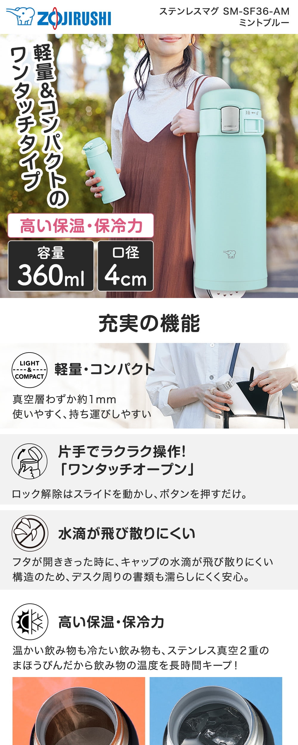 象印 SM-SF36-AM ミントブルー [ステンレスマグ(0.36L)]