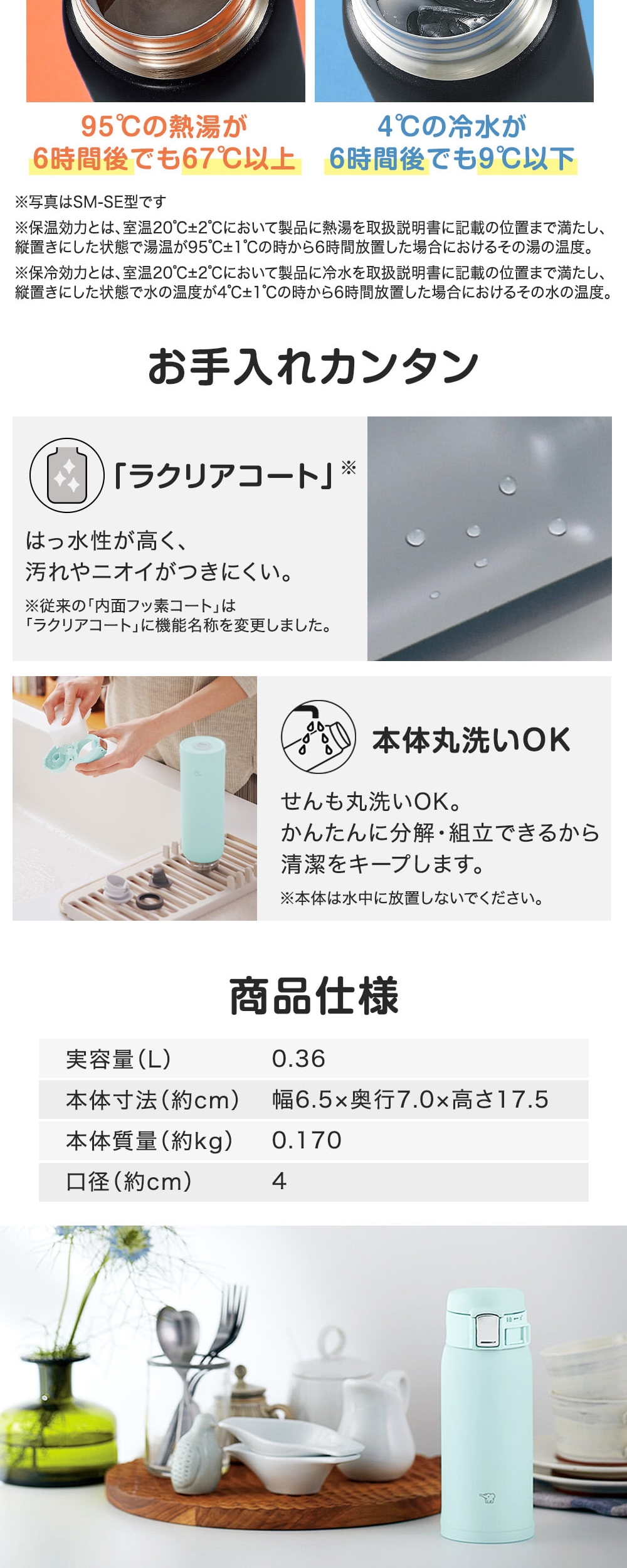 * 保温効力:67℃以上(6時間後)