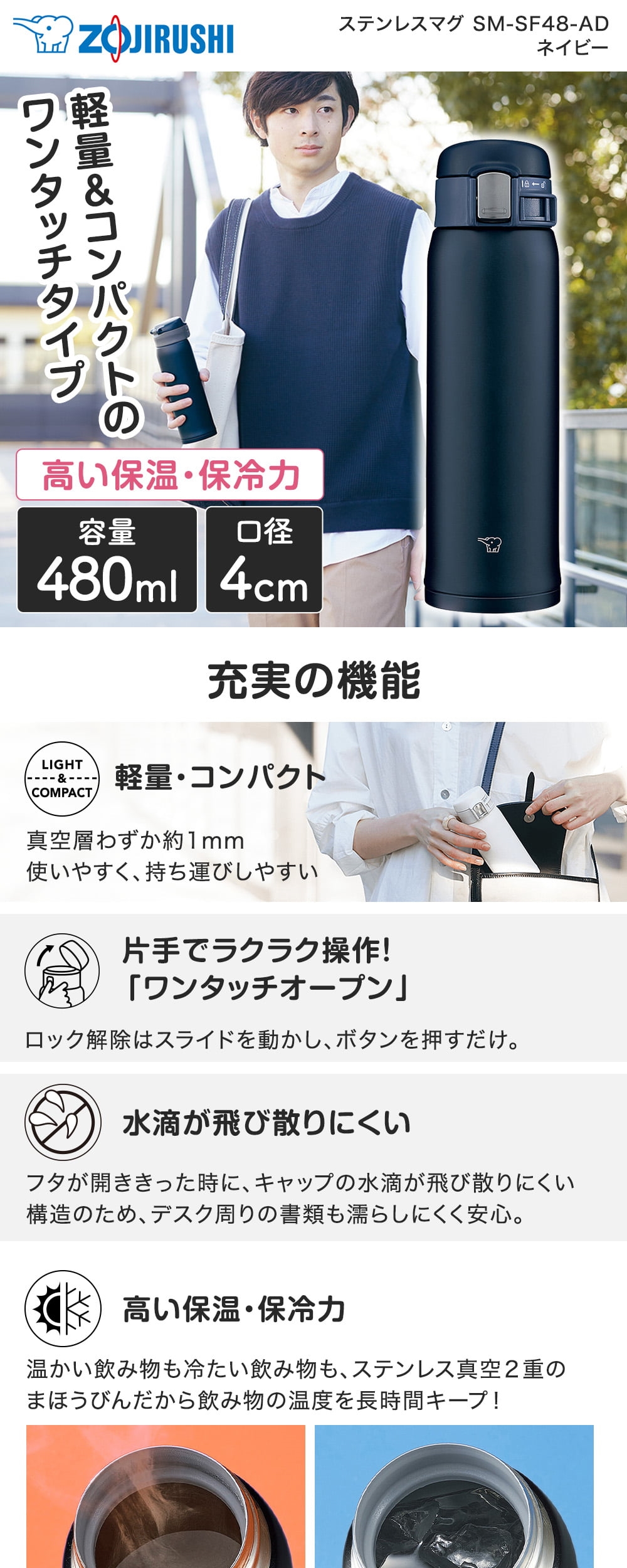 象印 SM-SF48-AD ネイビー [ステンレスマグ(0.48L)]
