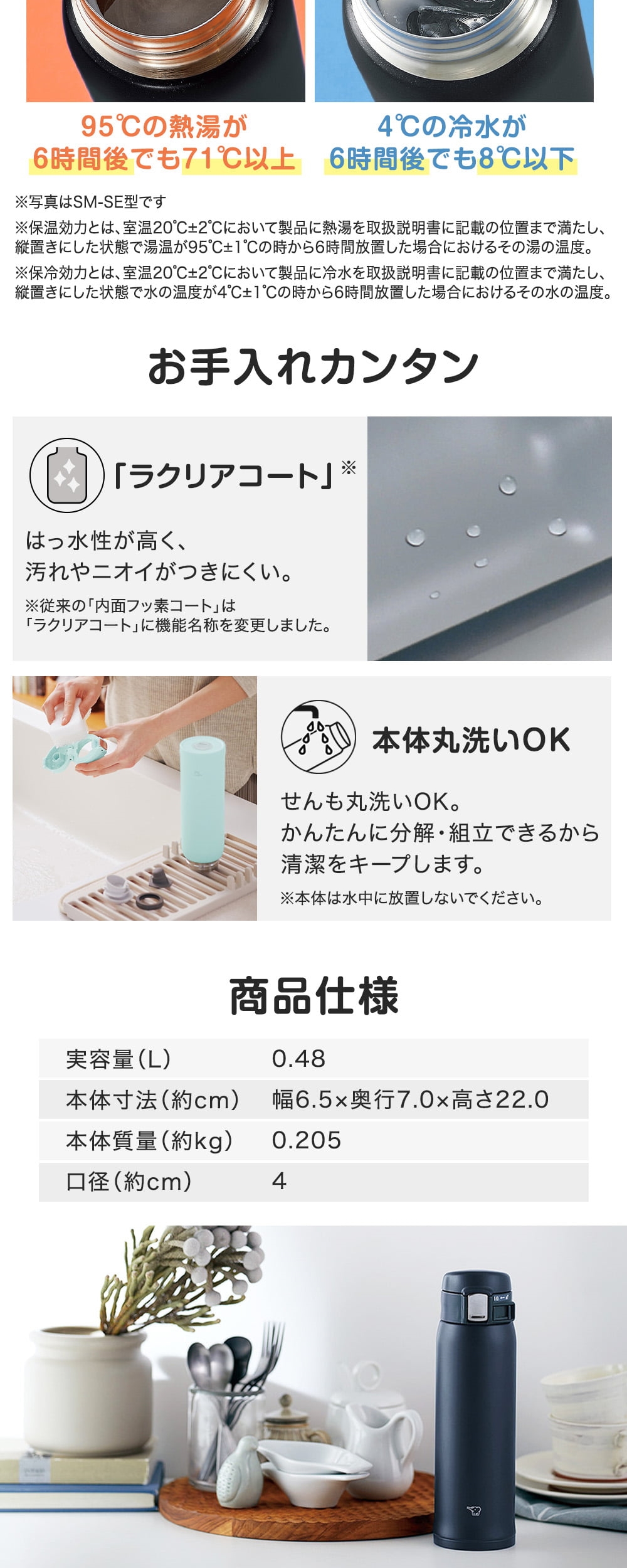* 保温効力:71℃以上(6時間後)
