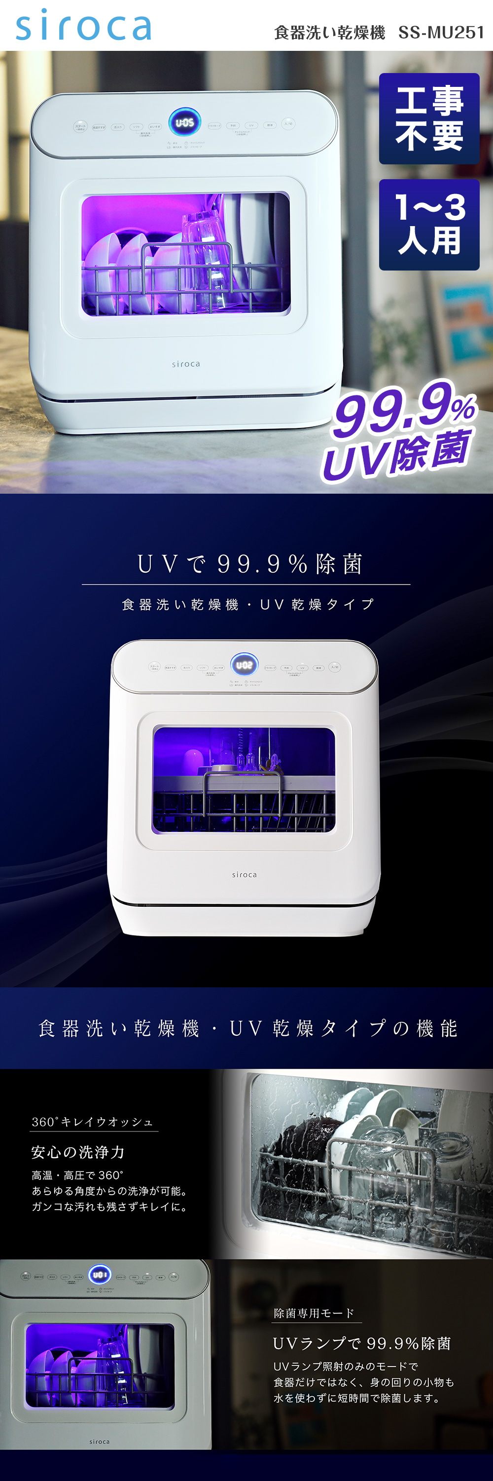 siroca SS-MU251 ホワイト [食器洗い乾燥機(~3人用)]