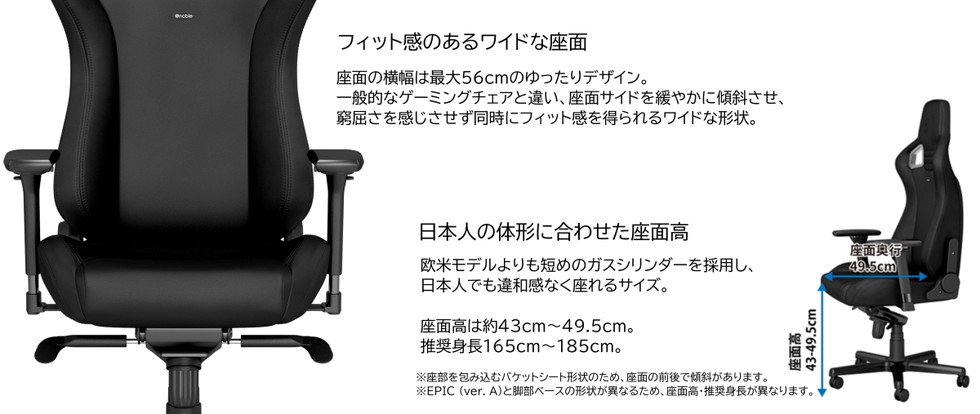 ・欧米モデルよりも短めのガスシリンダーを採用し、日本人でも違和感なく座れるサイズ。