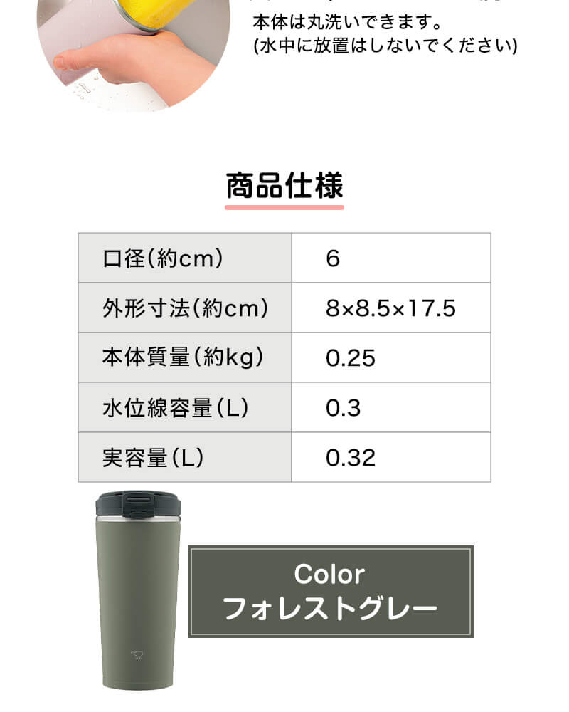 象印 SX-KA30-HM フォレストグレー [ステンレス キャリータンブラー (0.32L)]