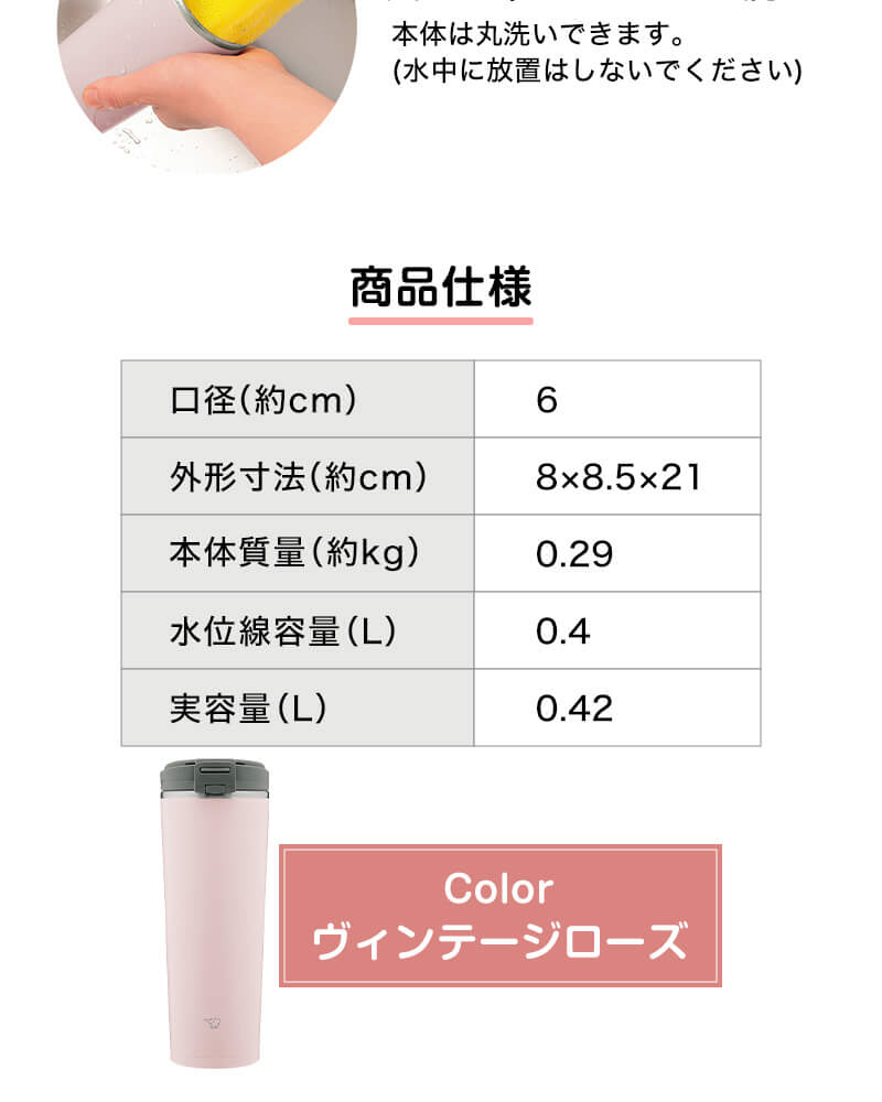 象印 SX-KA40-PM ヴィンテージローズ [ステンレス キャリータンブラー (0.42L)]