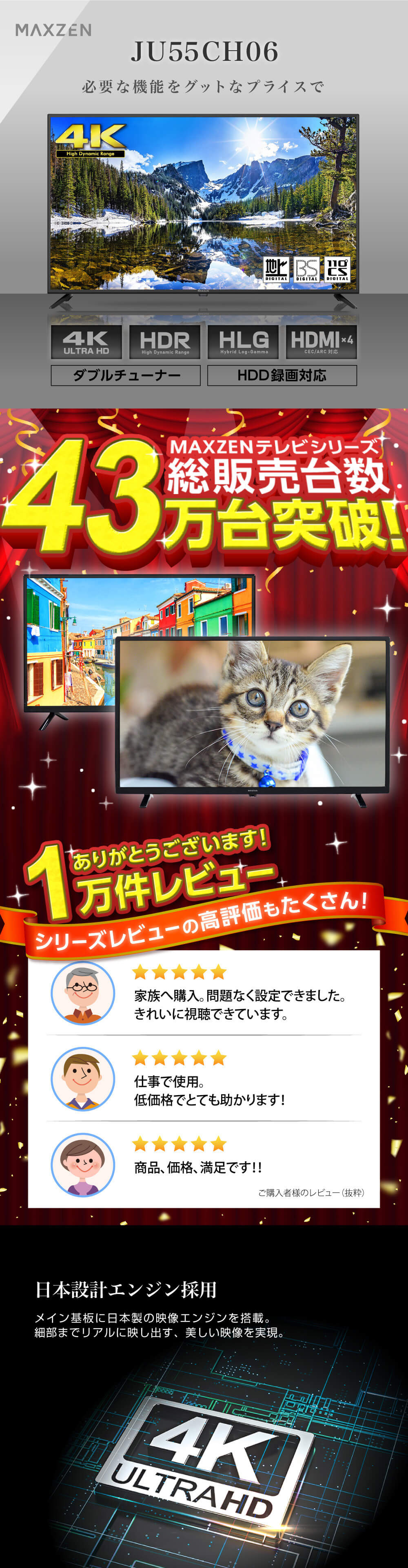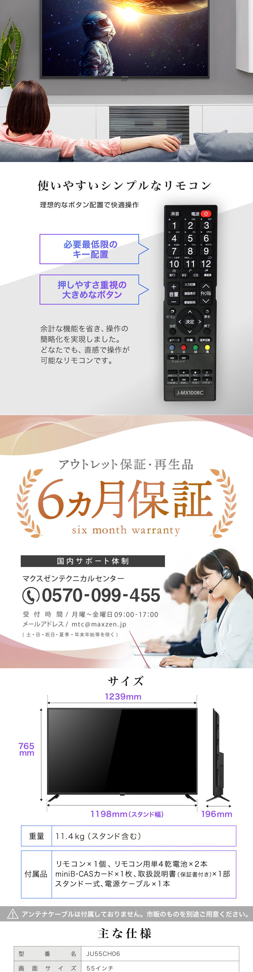 【アウトレット】 MAXZEN JU55CH06 [55型 地上・BS・110度CSデジタル 4K対応 液晶テレビ]