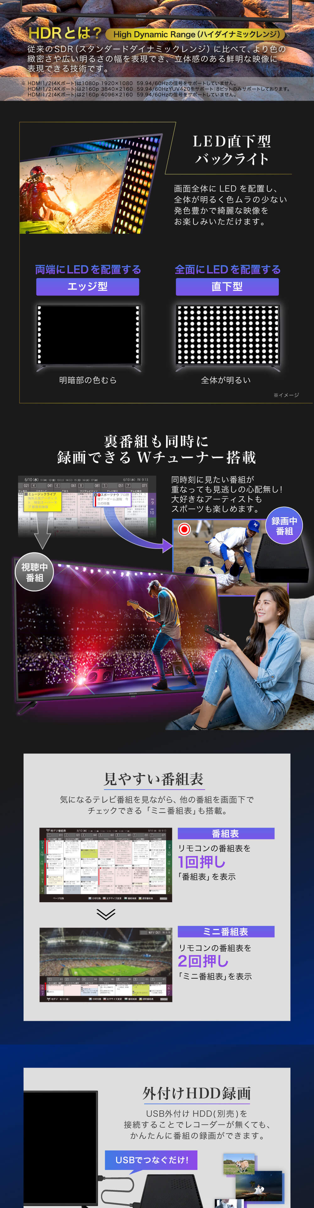 ★ HDR10/HLG対応。美しい色彩でリアルな映像体験。