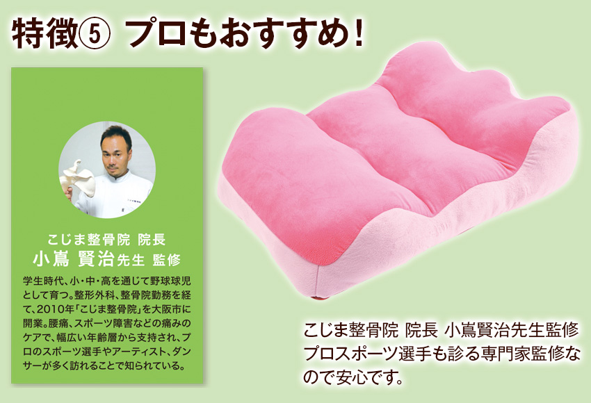仰向きで寝る時に使うと効果的です。膝の下に入れ、軽く膝を曲げて寝ることで腰への負担が軽減され、腰が自然に伸びて寝姿勢をサポートします。