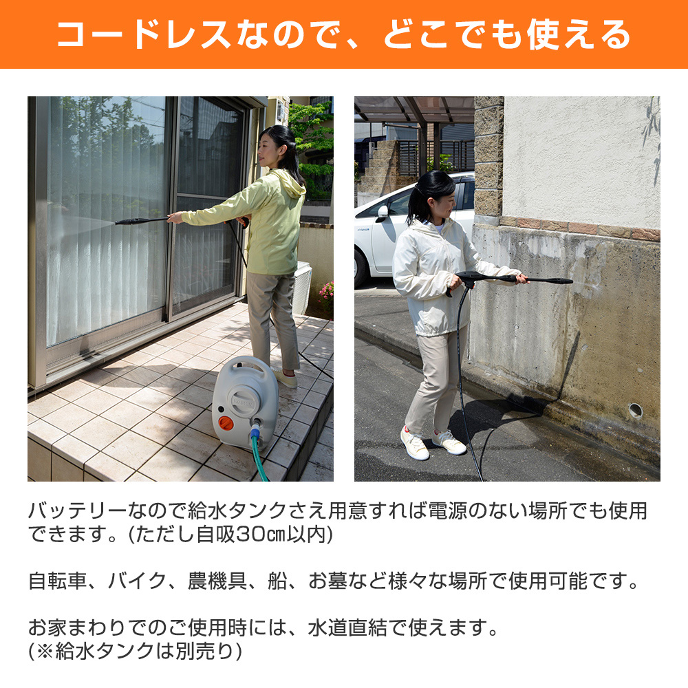コードレスでどこでもお掃除可能な高圧洗浄機。