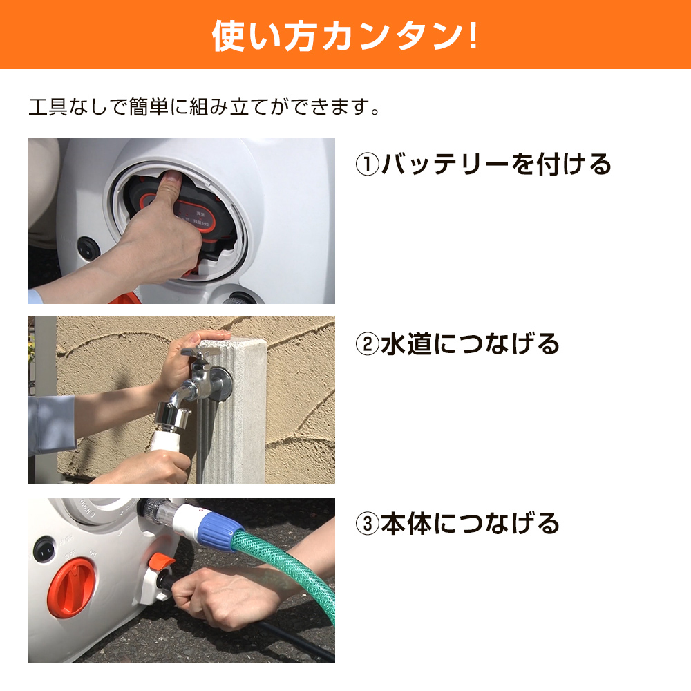★ コードレスなので電源のない場所でも使える。(別途給水タンク必要)
