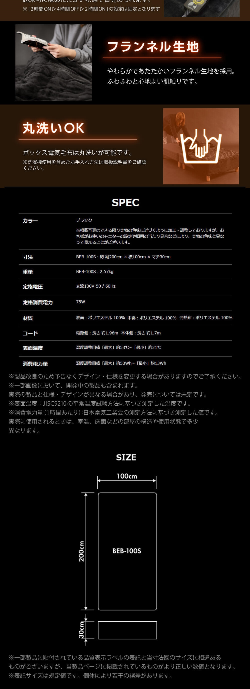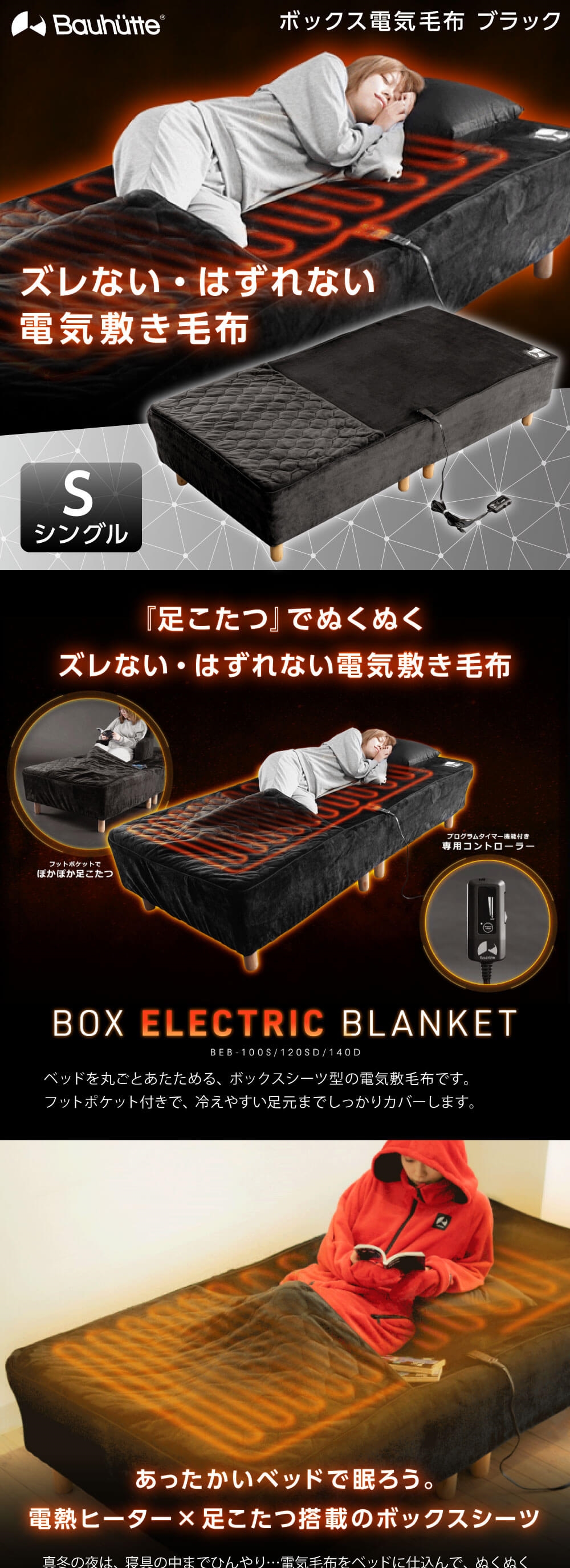 Bauhutte バウヒュッテ BEB-100S-BK ボックス電気毛布 ブラック シングル