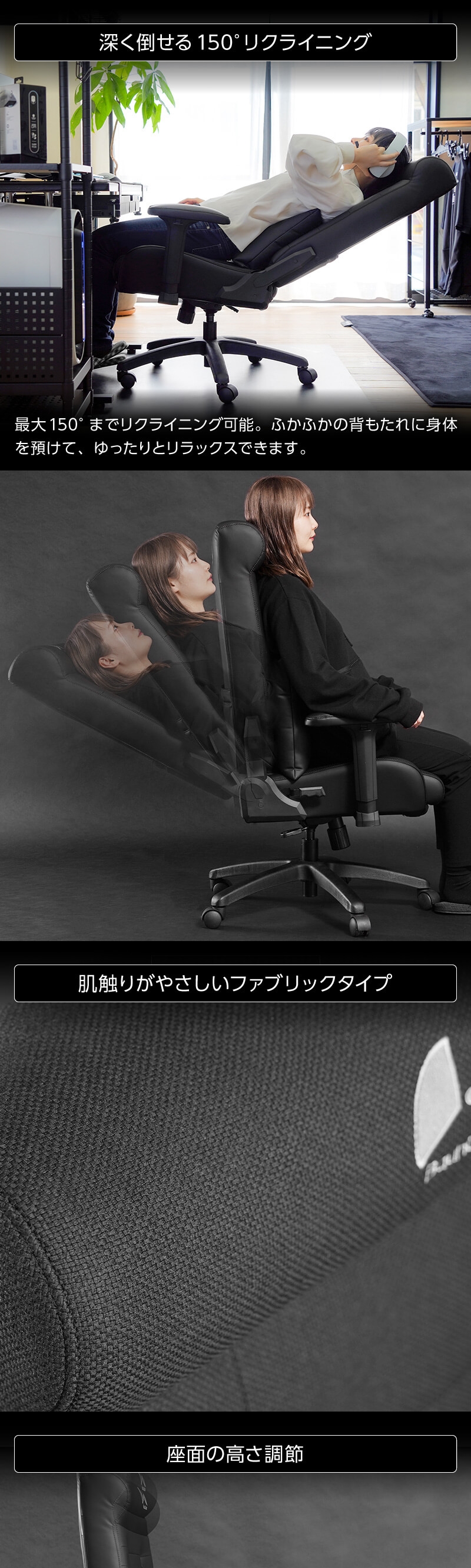 ★ 深く倒せる150°リクライニング