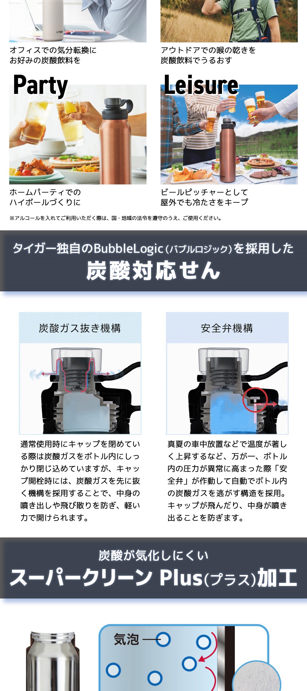 ★ タイガー独自のBubbleLogic(バブルロジック)を採用した炭酸対応せん
