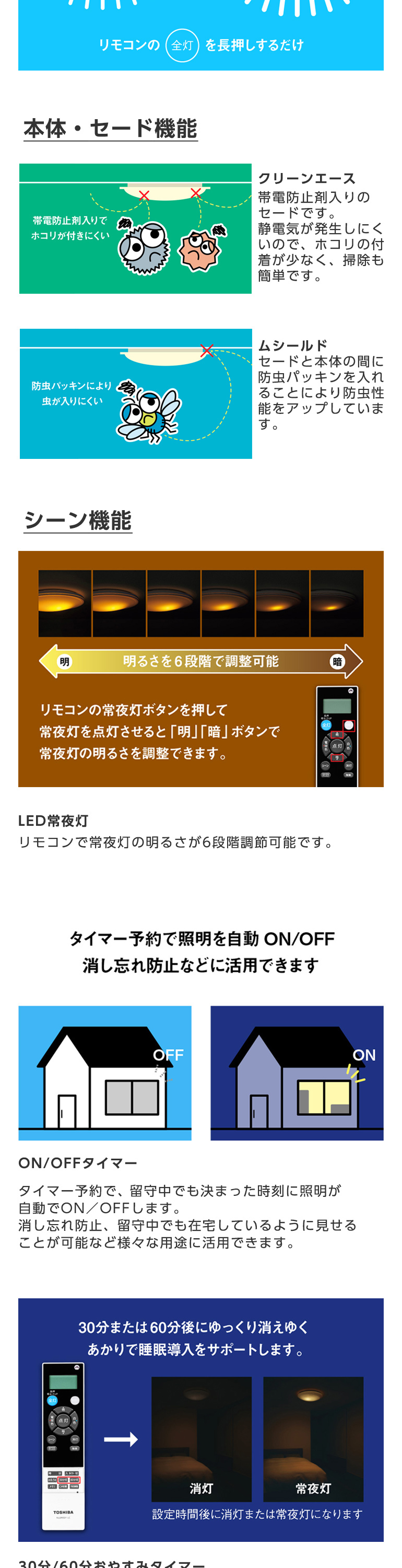 ★ 常夜灯の明るさが6段階調節可能です。