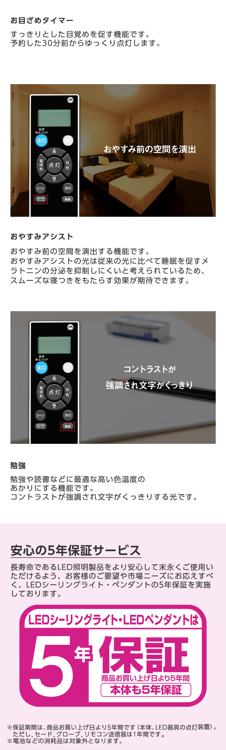 明るさをリモコンで自在に調整(全光時:100%~約5%)できる調光機能を備えています。