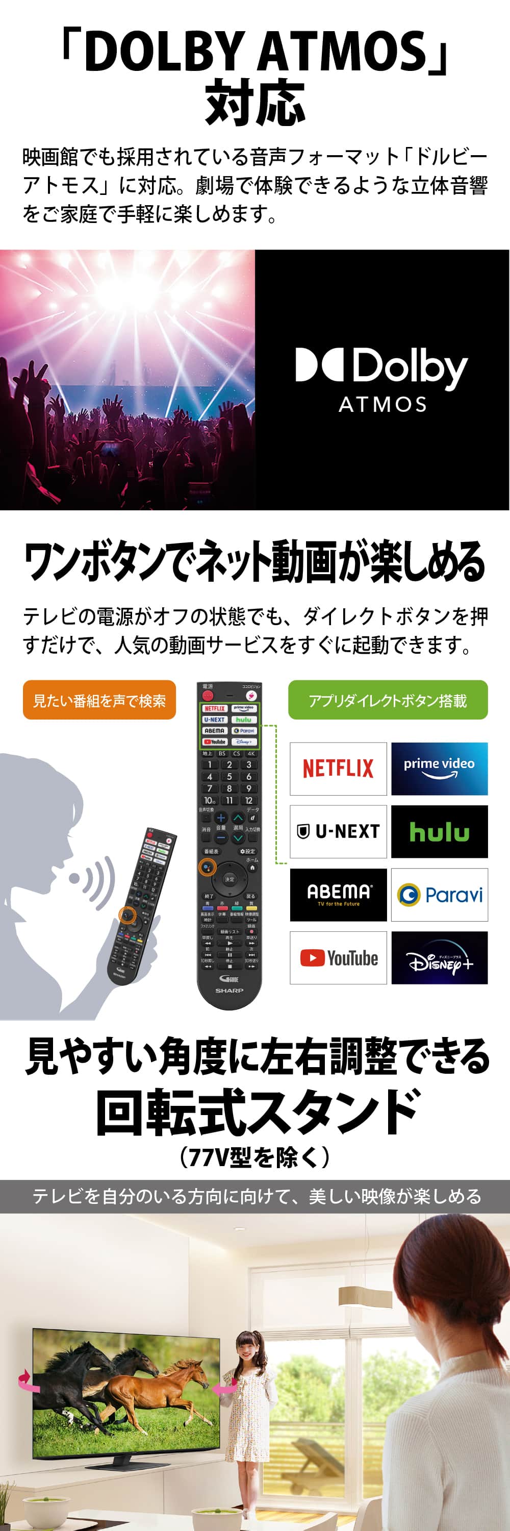 劇場で体験できるような立体音響をご家庭でも手軽にお楽しみいただける「Dolby Atmos」対応