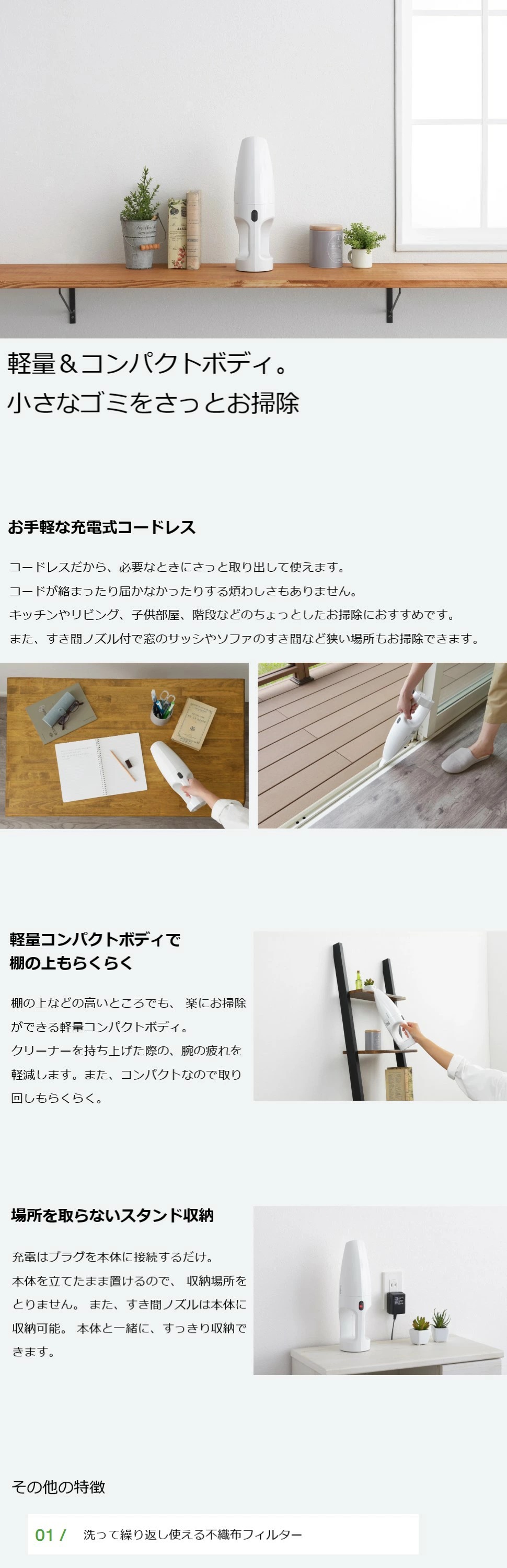 軽量&コンパクトボディのコードレスハンディクリーナー。小さなゴミをさっとお掃除。