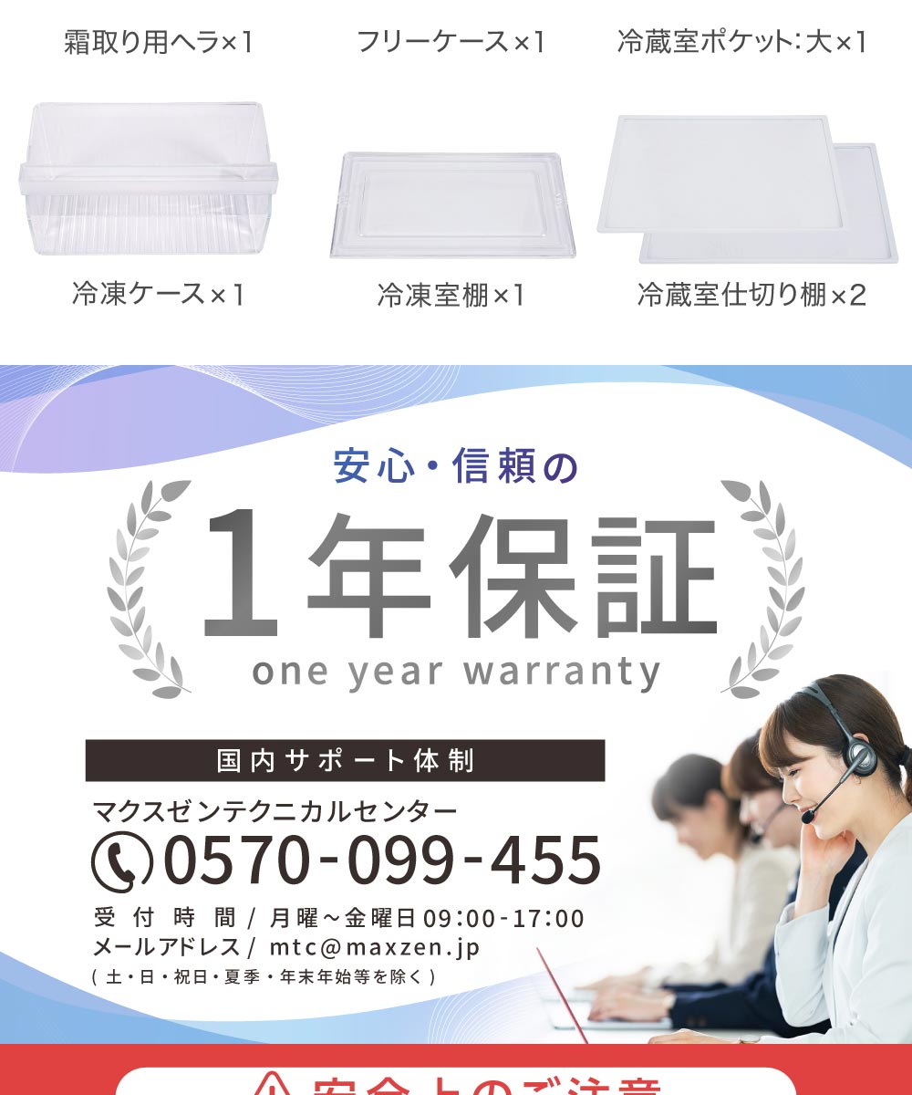 * 付属品:卵ケース×1、製氷皿×1、冷蔵室ポケット:小×1、霜取り用ヘラ×1、フリーケース×1、冷蔵室ポケット:大×1、冷凍ケース×1、冷凍室棚×1、冷蔵室仕切り棚×2