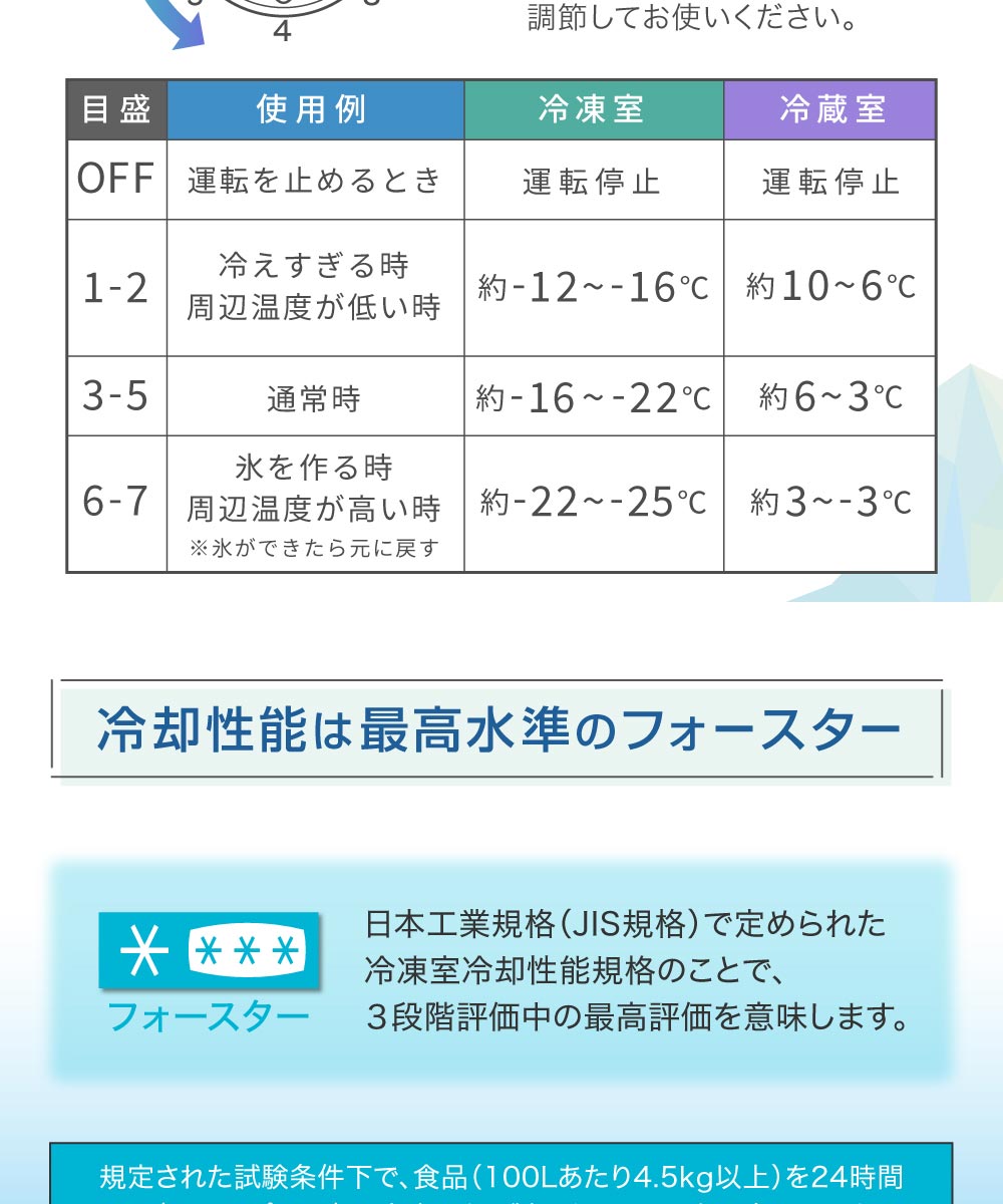* 冷却方法:直冷式 (温度調節ダイヤル付き)