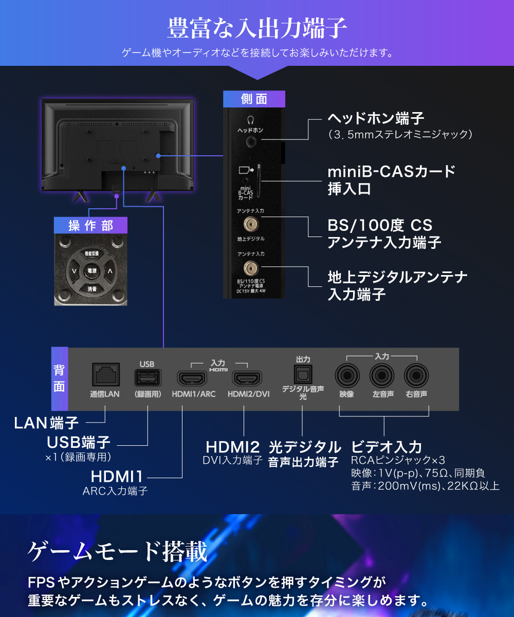 ゲーム機やオーディオなどを接続してお楽しみいただけます。