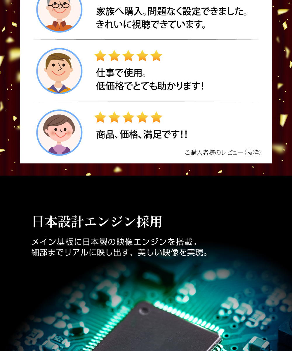 メイン基板に日本製の映像エンジンを搭載。